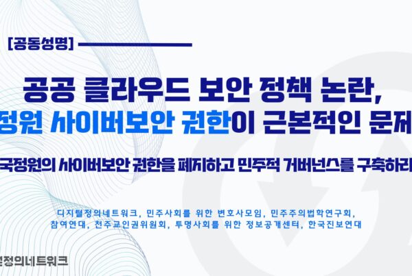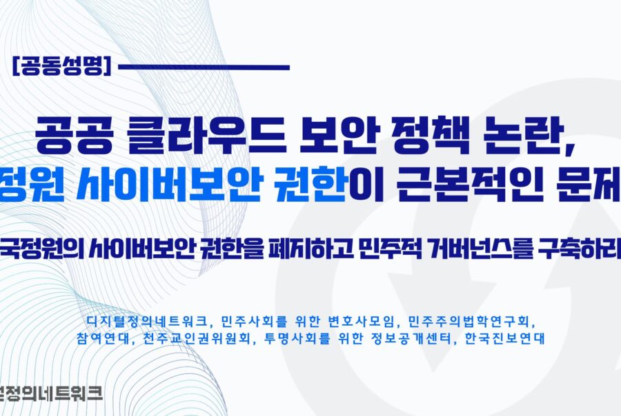 [공동성명]공공 클라우드 보안 정책 논란, 국정원 사이버보안 권한이 근본적인 문제다